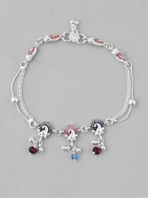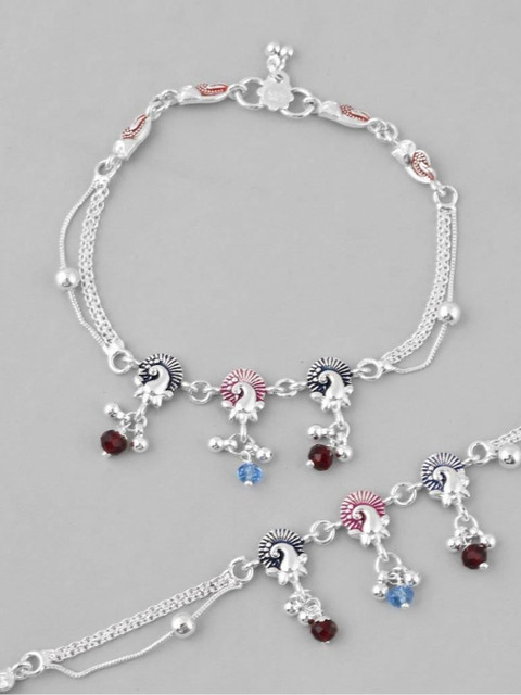 Add a touch of elegance to your jewelry collection with our Set of 2 Silver Plated Peacock Shaped Multi Color Anklets. Each anklet features a stunning peacock design adorned with vibrant multi-color accents that reflect traditional artistry and contemporary flair. Crafted from high-quality silver plating, they ensure durability and a radiant shine that lasts. Lightweight and comfortable, these anklets are perfect for both everyday wear and special occasions, making them an essential accessory for the modern woman who loves to showcase her unique style.