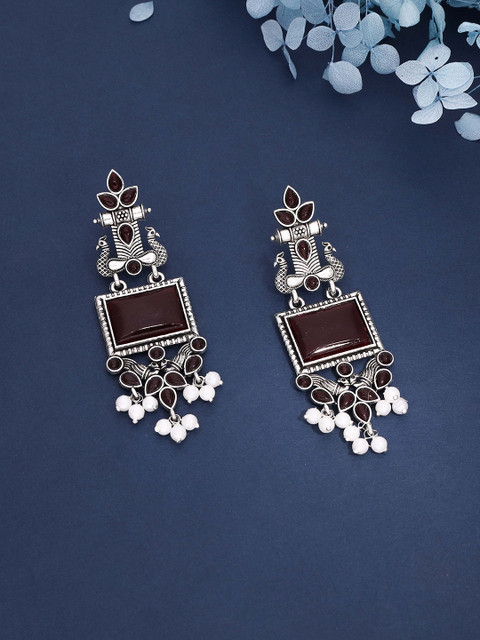 3 reviews for Sangria Silver- Plated Artificial Stones And Beads Square Shaped Drop Earrings