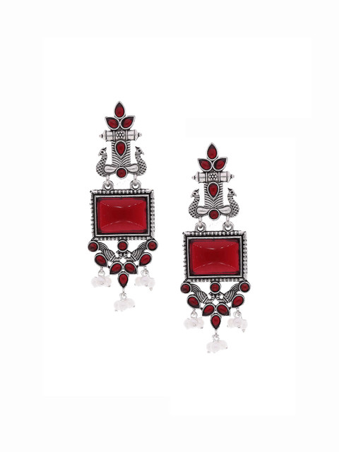 Sangria Silver- Plated Artificial Stones And Beads Square Shaped Drop Earrings