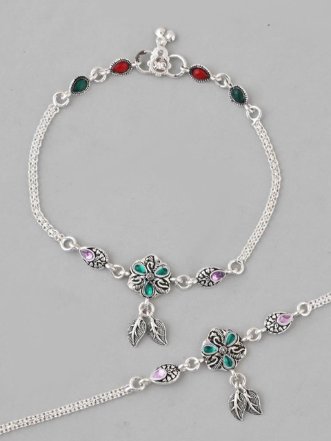 Add a touch of charm to your jewelry collection with our Set of 2 Traditional Stone Studded Flower Shaped Anklets. Each anklet features a beautifully crafted flower design, adorned with sparkling stones that bring a vibrant pop of color. Reflecting exquisite craftsmanship, these anklets are perfect for both everyday wear and special occasions. Lightweight and comfortable, they effortlessly enhance any outfit, making them a must-have accessory for the modern woman who loves to showcase her unique style with a traditional flair!