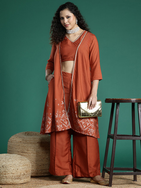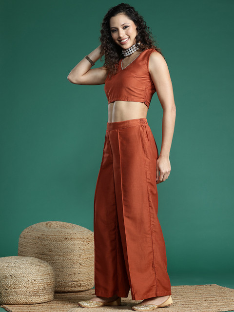 Featuring unique colour, this Co-ords will fit you rightly at waist & will give the right amount of flare! Pair it with flats and subtle jewellery for an elegant summer look.