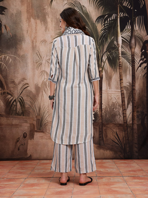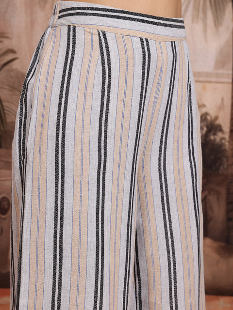Sangria Striped Pure Cotton Kurta With Palazzos & Dupatta