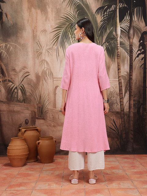 Sangria Women Crinkle A-Line Pure Cotton Calf Length Kurta
