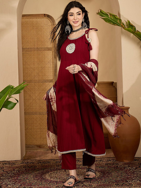 It’s a vibrant and eye-catching dress that would be well-suited for festive occasions, parties, or special casual events. The combination of the rich color, dense print, and contrasting trim makes it a memorable piece.