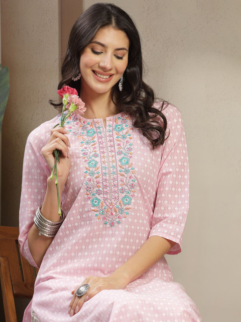 The fabric is amazing as I believe it is pure cotton and the embroidery is beautiful. It is very comfortable, Go for it