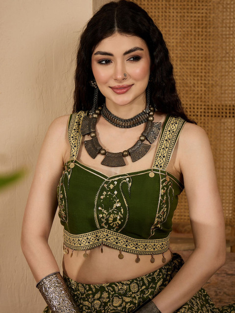 It’s very comfy and breathable, I ordered this for garba night but it has no lace detailing in the blouse like it’s a plane cotton skirt and top .