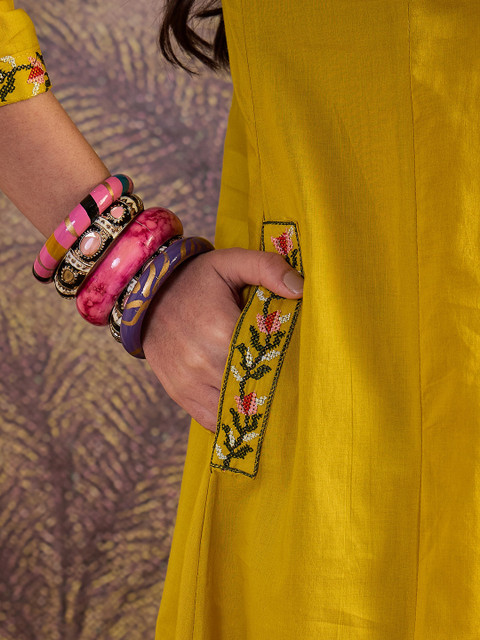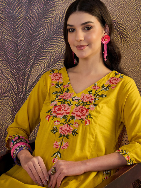 This kurti palazzo set is absolutely stunning! The fabric is luxurious and comfortable, and the embroidery is even more beautiful in person. I received so many compliments at the wedding I attended.