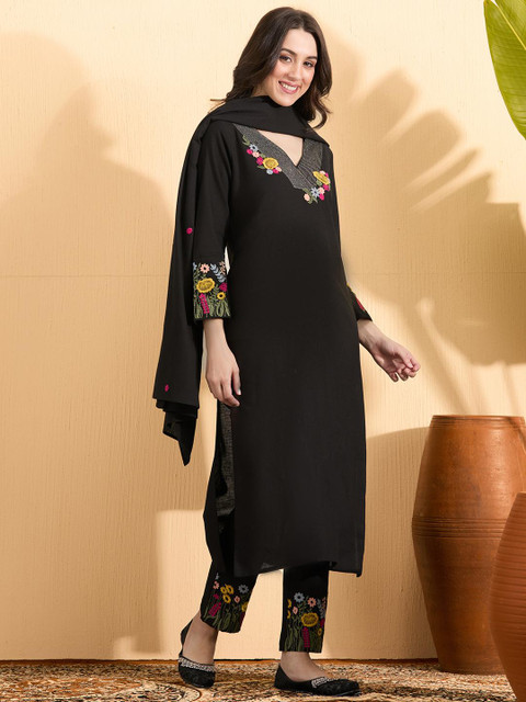 Black embroidered Kurta with Trousers with dupatta