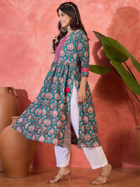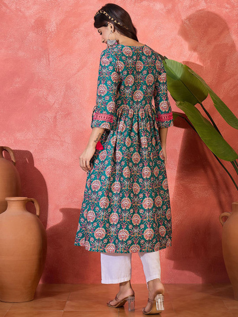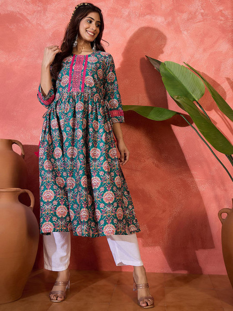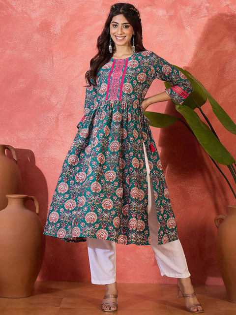 Sangria Women Floral Printed Daily Pure Cotton Anarkali Kurta
