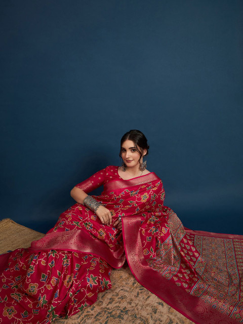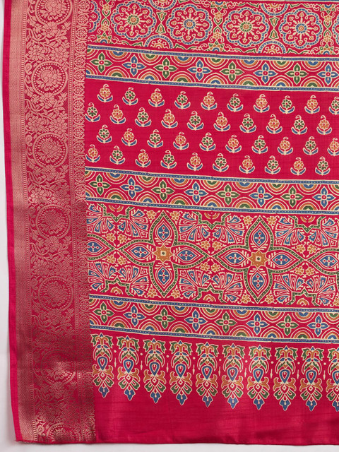 The saree comes with an unstitched blouse piece