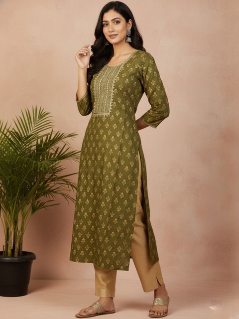 PAIR THIS ELEGANT KURTA SET WITH STATEMENT EARRINGS AND JUTTIS FOR A CLASSIC FESTIVE OR WORKWEAR LOOK.