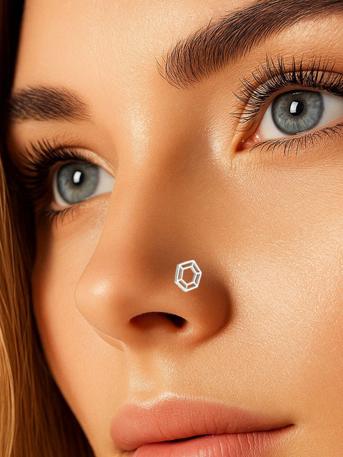 Hexagonal Geometric 925 Sterling Silver Wire Stud Nosepin