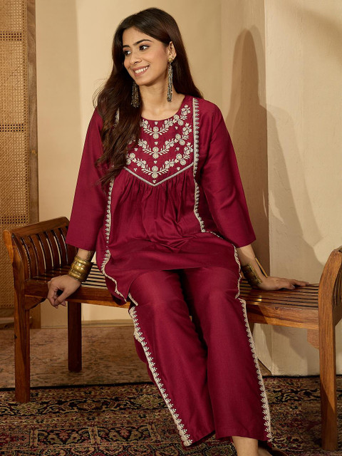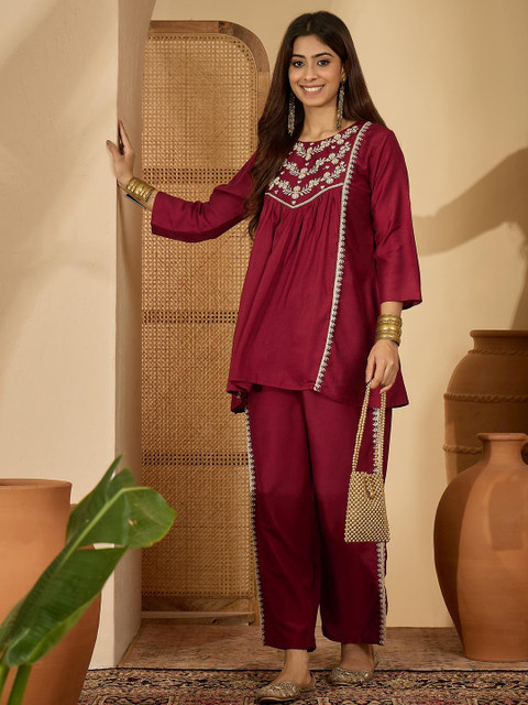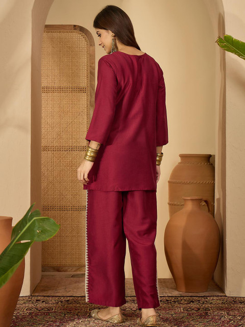 Sangria Women Maroon Pure Silk Co-Ords