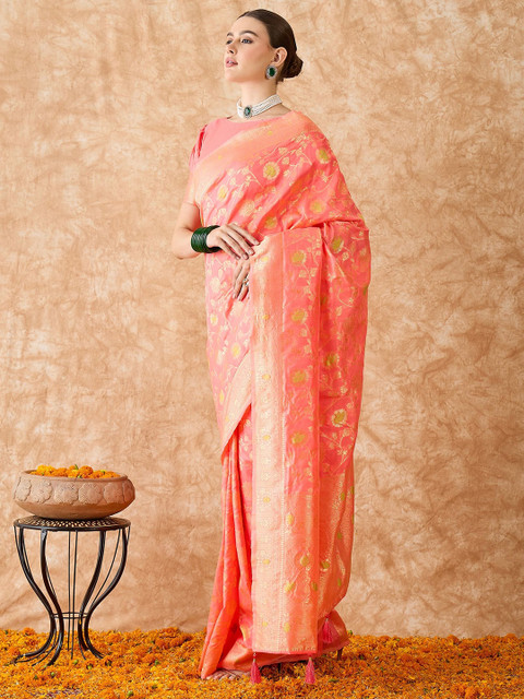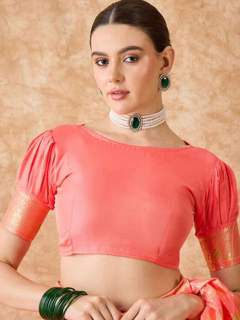 The blouse worn by the model could be for modelling purpose only, please check the image of the actual blouse piece