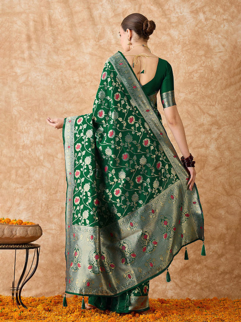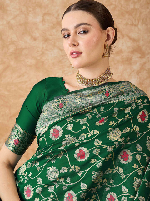The blouse worn by the model could be for modelling purpose only, please check the image of the actual blouse piece