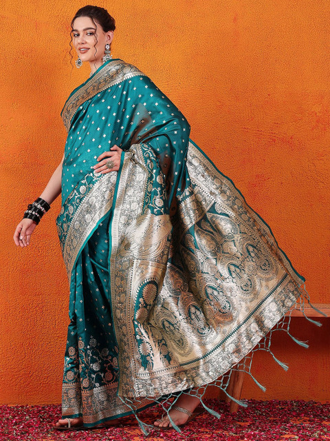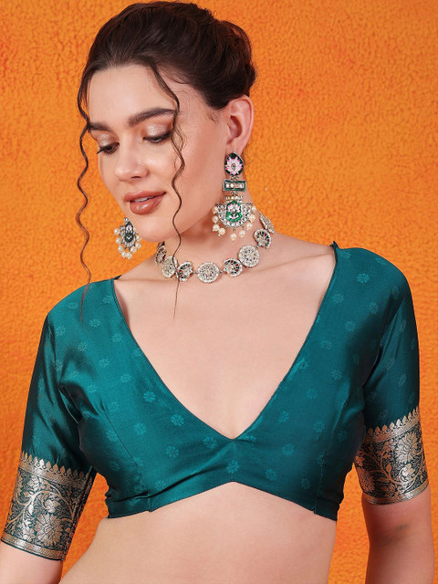 The blouse worn by the model could be for modelling purpose only, please check the image of the actual blouse piece