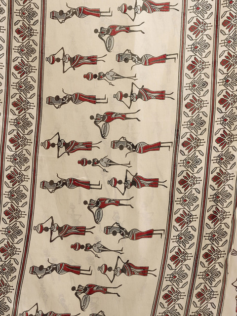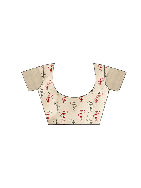 Off white, red and black saree