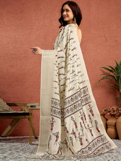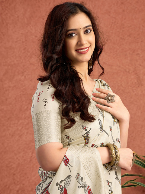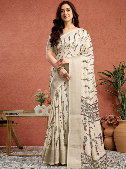 Ethnic motifs printed saree with woven design border