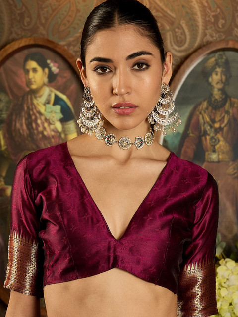 The blouse worn by the model could be for modelling purpose only, please check the image of the actual blouse piece
