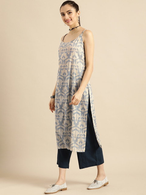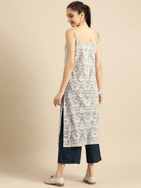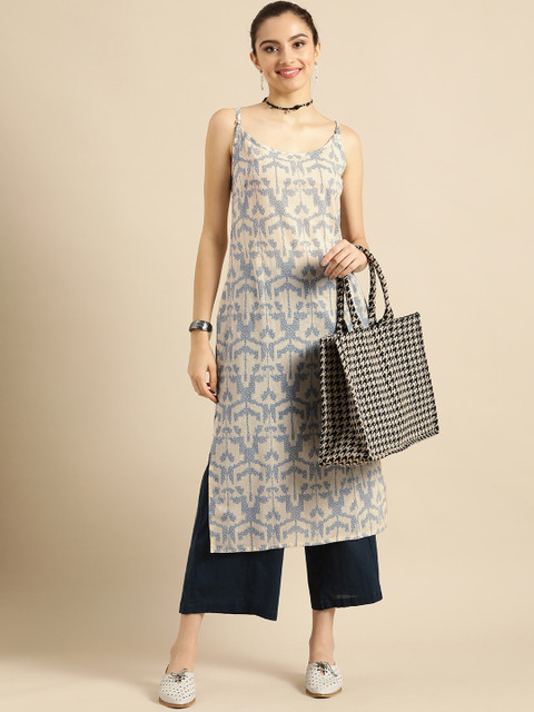 With the breezy printed pattern, this straight kurta will become your go-to outfit. Top it off with these classic leggings and comfortable flats