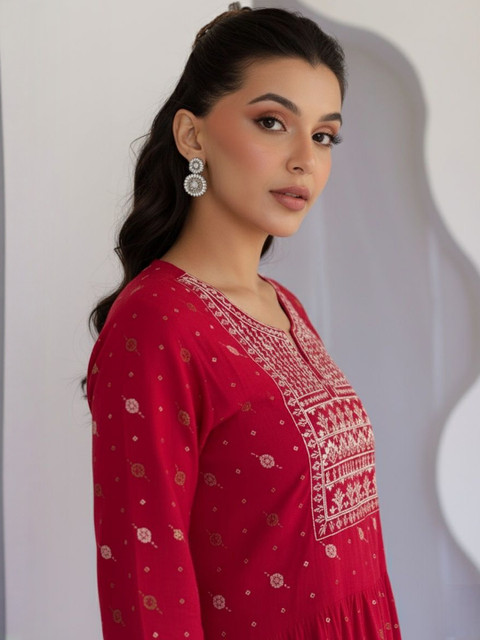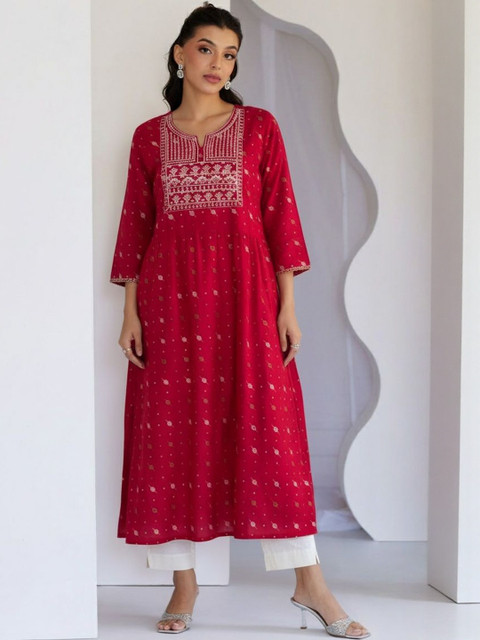 PAIR THIS ELEGANT KURTA SET WITH STATEMENT EARRINGS AND JUTTIS FOR A CLASSIC FESTIVE OR WORKWEAR LOOK.