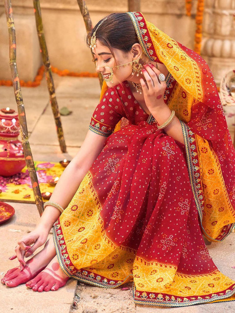 Saree Fabric :- Poly Georgette || Blouse Fabric :- Silk Blend || Hand Wash