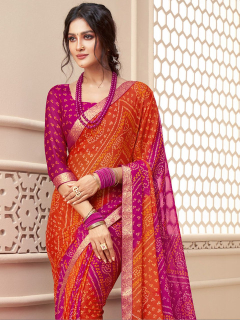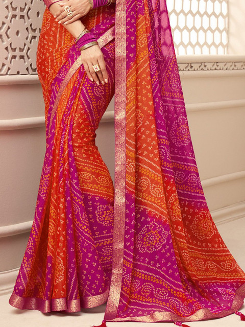 Just amazing fabric Georgette bandhani saree., giving a very elegant look. Perfect for gifting and pooja purpose.