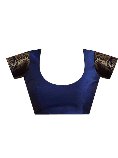 The blouse worn by the model might be for modelling purpose only. Check the image of the blouse piece to understand how the actual blouse piece looks like.