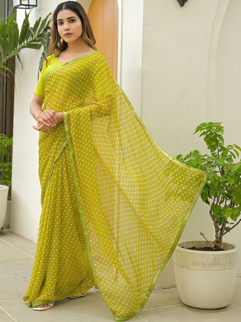 - Polka dot printed saree with solid border border
