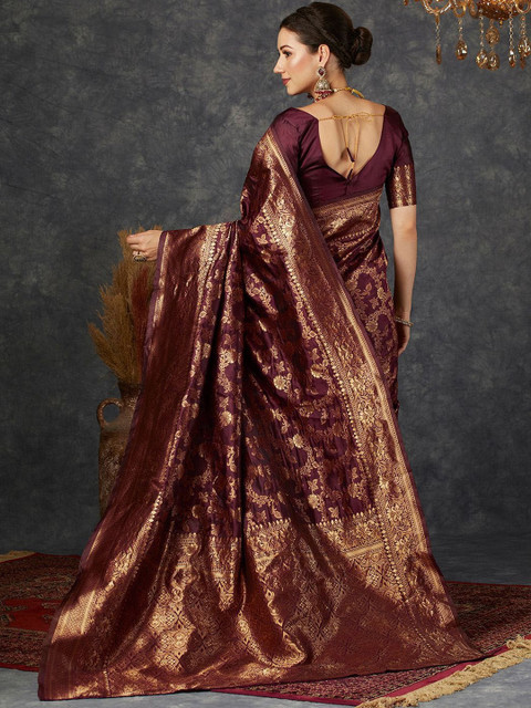 Beautiful Zari silk blend saree with soft, flowing fabric and elegant golden detailing. Rich texture and vibrant colors make it perfect for weddings or festive occasions, exuding timeless charm.