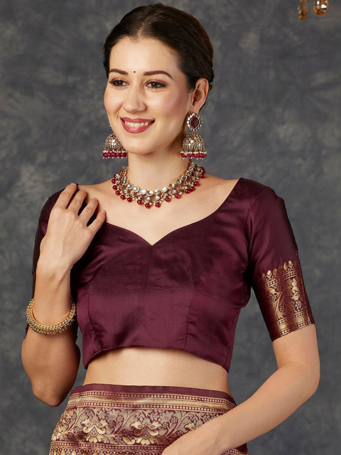 The blouse worn by the model might be for modelling purpose only. Check the image of the blouse piece to understand how the actual blouse piece looks like.