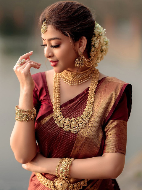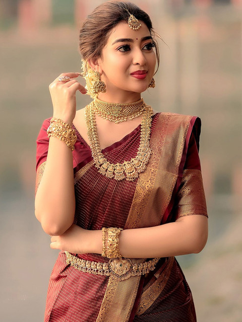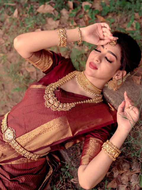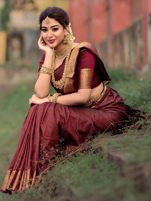 Zari silk saree, blending traditional elegance with contemporary charm. Soft, smooth fabric drapes beautifully, intricate golden work shines gracefully, perfect for festive occasions or weddings, making every moment memorable.