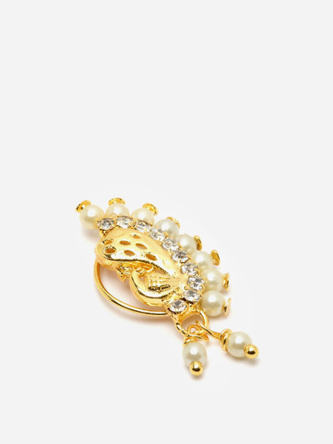 Gold-plated red stone-studded & Beaded nose pin with textured detail