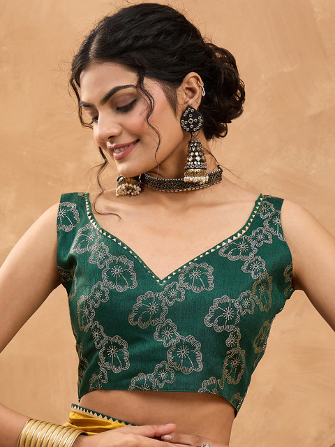 The blouse worn by the model might be for modelling purpose only. Check the image of the blouse piece to understand how the actual blouse piece looks like.