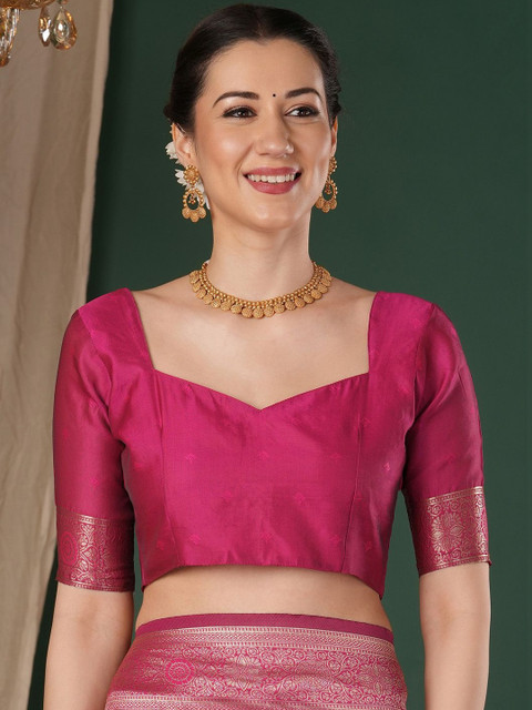 The blouse worn by the model might be for modelling purpose only. Check the image of the blouse piece to understand how the actual blouse piece looks like.
