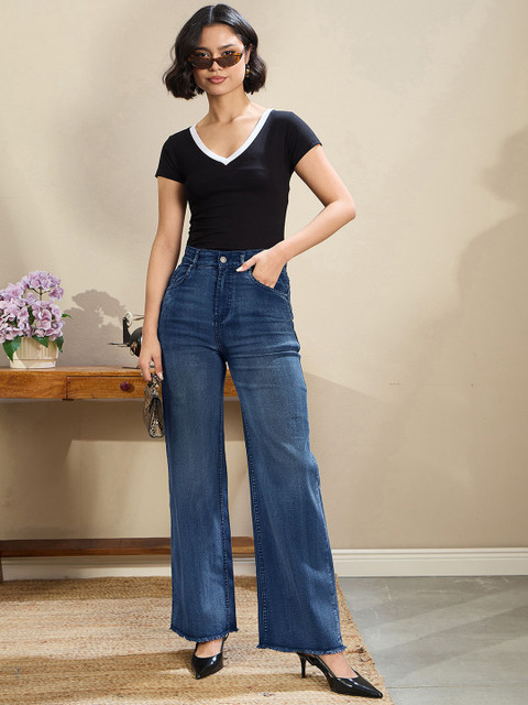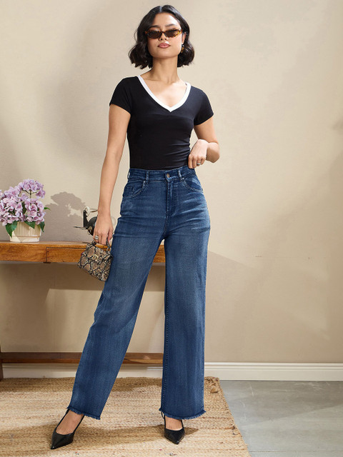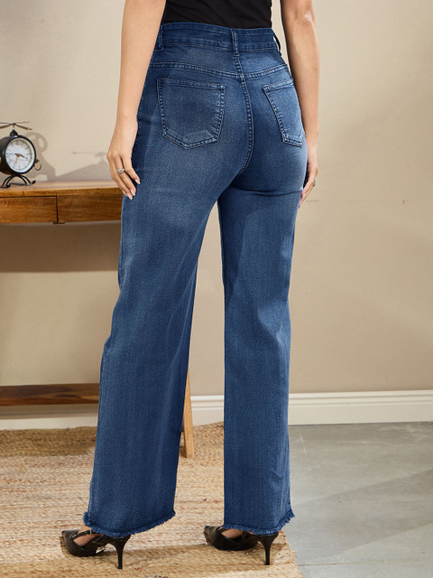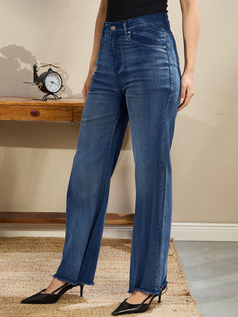 SASSAFRAS BASICS Women Comfort Straight Fit High-Rise Clean Look Light Fade Jeans
