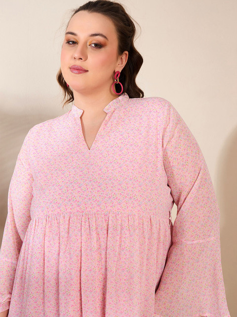 • Pink floral print a-line dress