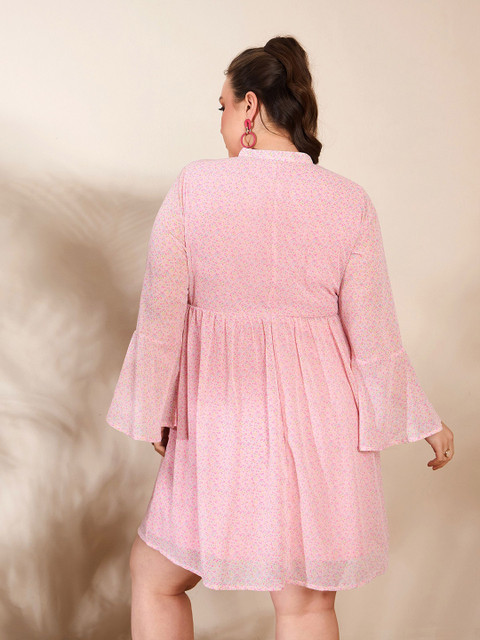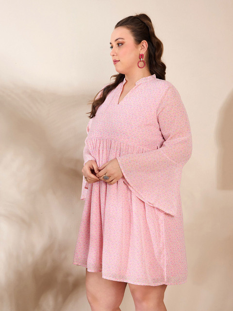 SASSAFRAS Curve Plus Size Floral Print Georgette A-Line Dress