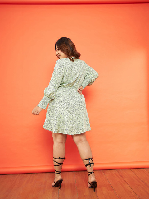 SASSAFRAS Curve Plus Size Floral Printed Crepe A-Line Dress