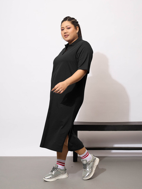 SASSAFRAS Curve Plus Size Polo Neck T Shirt Pure Cotton Midi Dress
