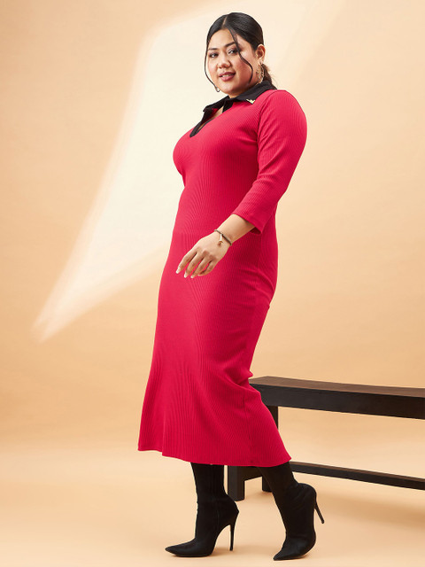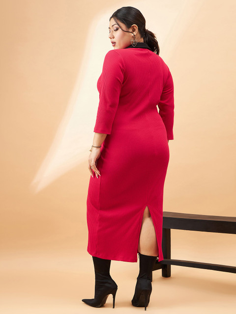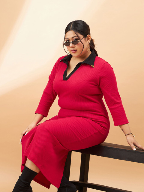 - Red and black ribbed sheath dress