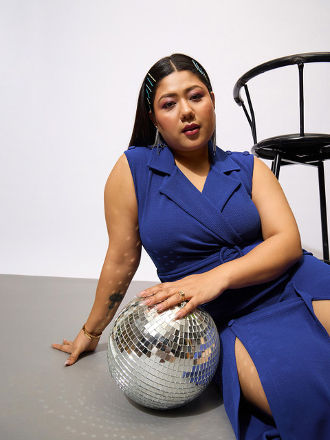3 reviews for SASSAFRAS Curve Plus Size Shirt Collar Sleeveless Midi Wrap Dress With Belt