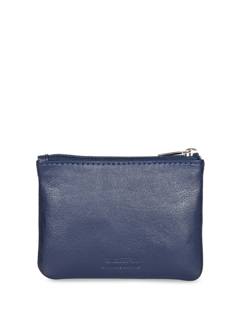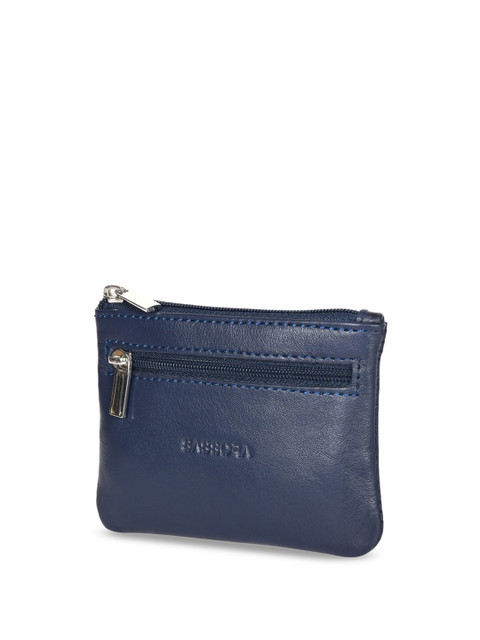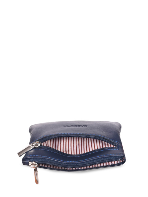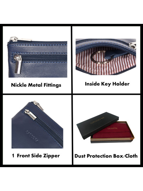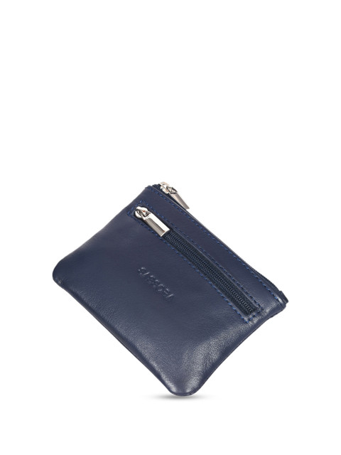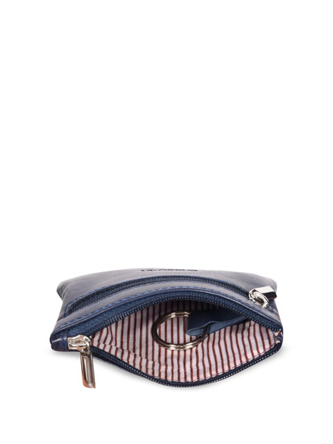 Navy blue key pouch is crafted with premium genuine leather and features a secure zip closure for extra protection.
