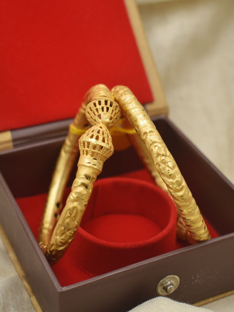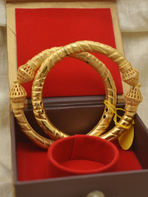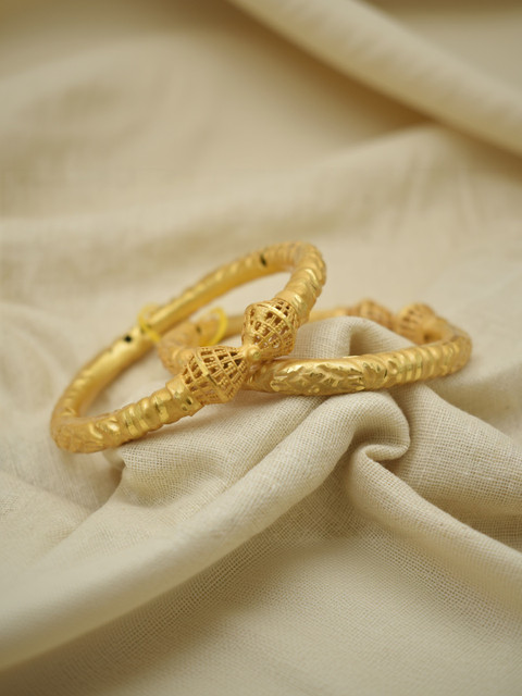 Set of two gold-plated bangles, each has textured and intricate details, secured with slip-on closure