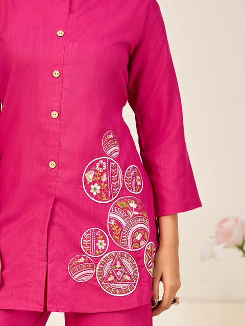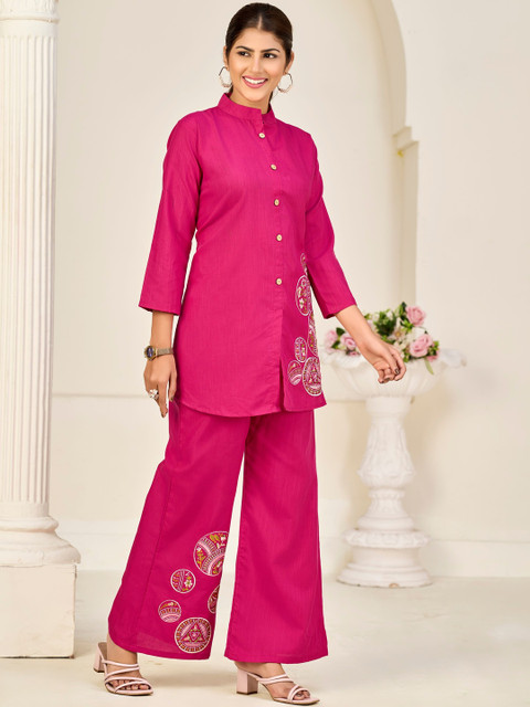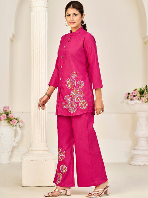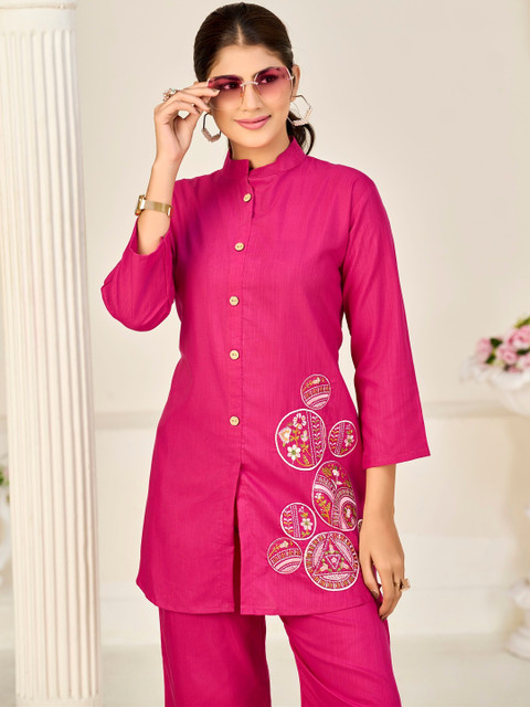 SAVANIPETAL Embroidered Mandarin Collar Tunic & Trousers Co-Ords