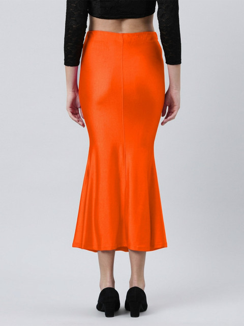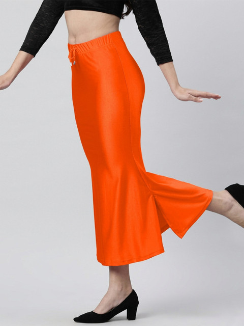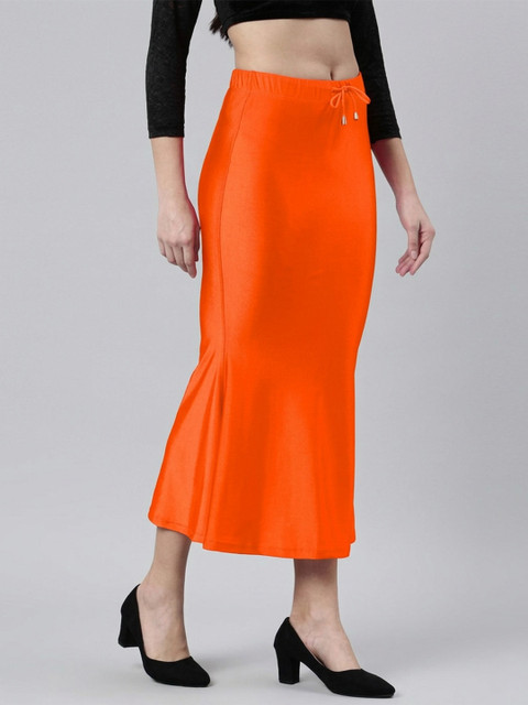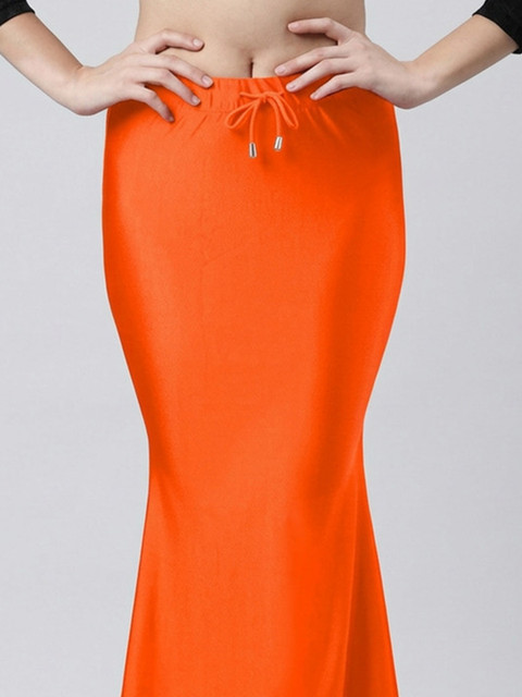 Orange colored solid saree shapewear has an elasticated waistband with drawstring closure