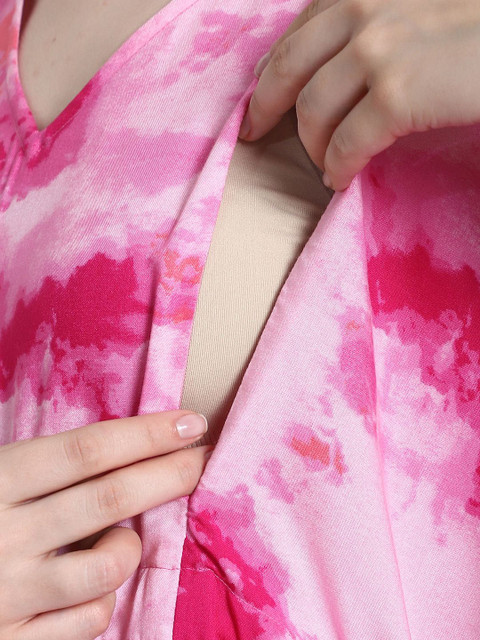 Secret Wish Tie & Dye Print Maxi Maternity Kaftan Nightdress
