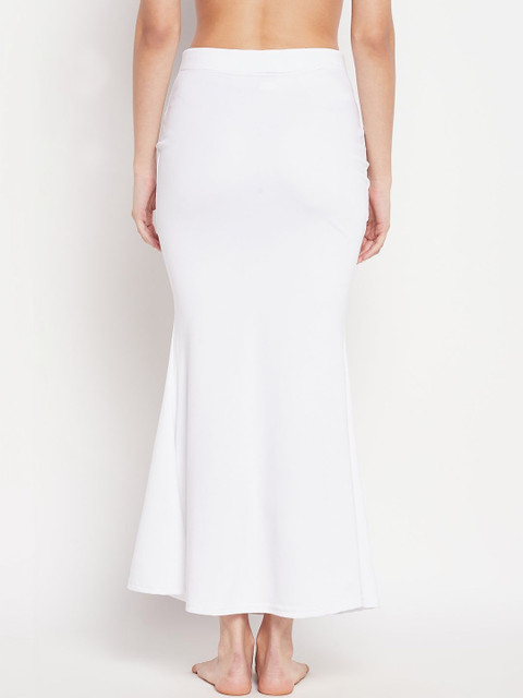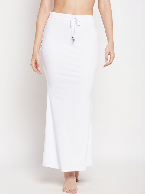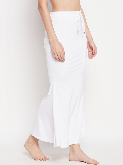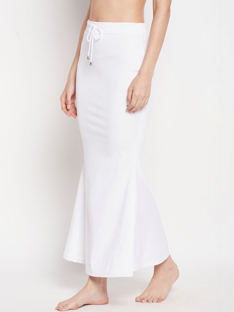 Women white solid saree shapewear, has an elasticated waistband with drawstring closure, seamless mermaid fit, stretchable fabric for utmost comfort, and side slit for easy movement.