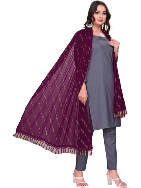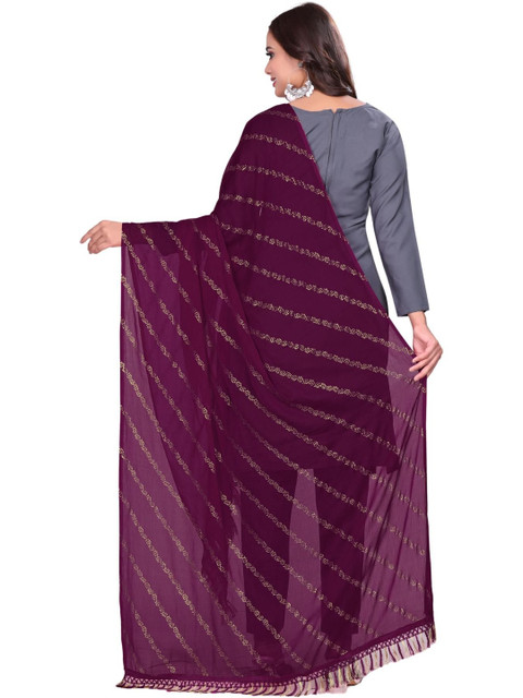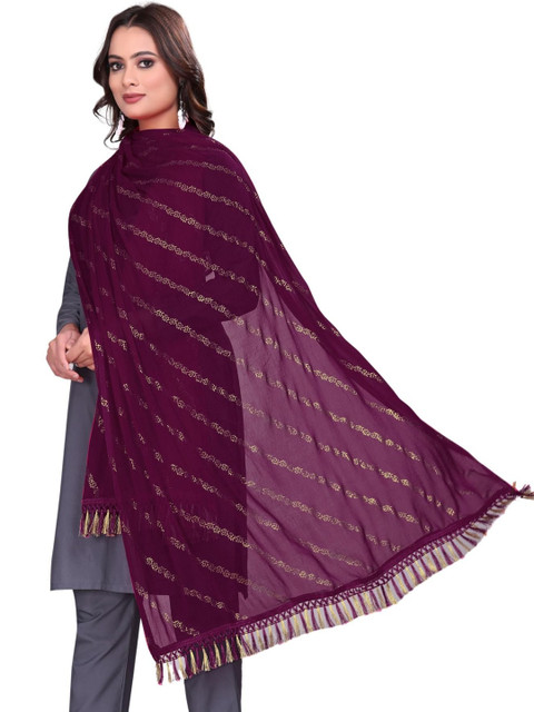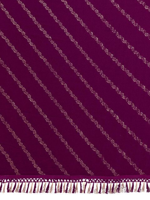 Purple Leheriya Printed dupatta has Foil Print technique, Zari, Tasselled border