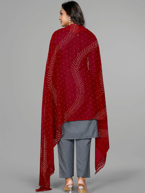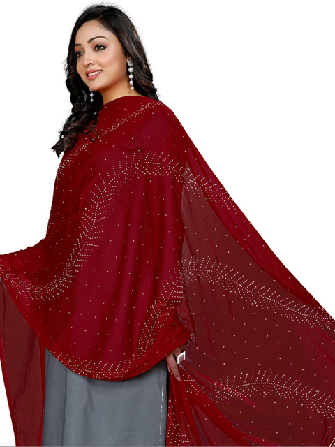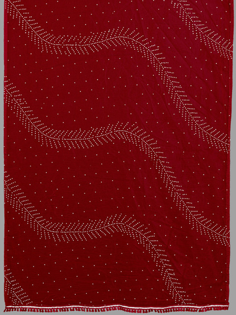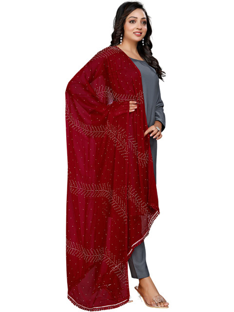 Maroon and White Geometric Printed dupatta has Leheriya technique, Beads and Stones, Tasselled border